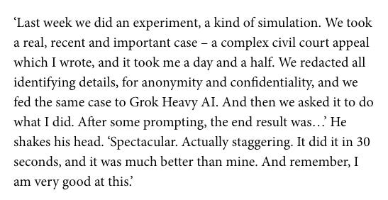 AI has already begun reshaping white-collar work. Legal services got hit first, with contract review that once took junior associates days now being completed in minutes. Due diligence, document discovery, and regulatory compliance are increasingly handled by AI systems that bill you per token, not by the hour. Law firms that initially resisted are now racing to adopt, with proponents arguing that the belief human legal work is irreplaceably complex is misguided. In reality, they say legal work primarily involves pattern recognition, structure, precedent matching, argument assembly, and risk framing. That’s exactly the territory where AI thrives (though issues remain).