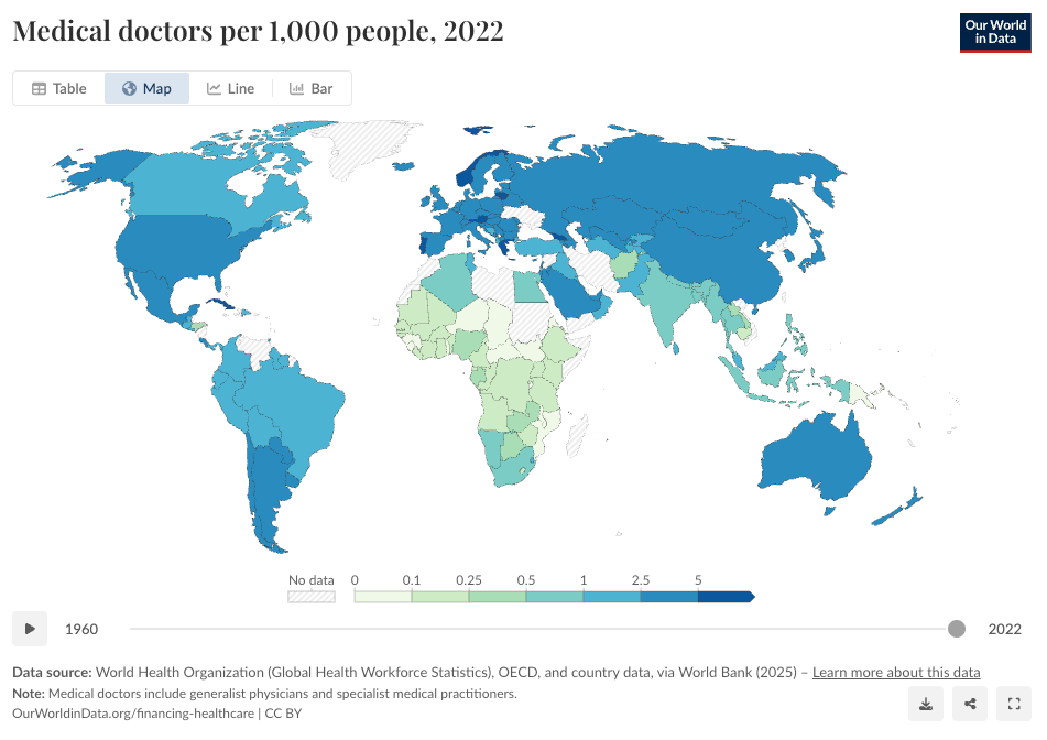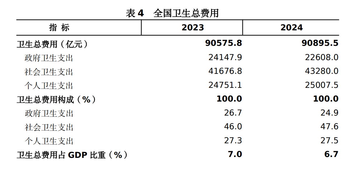 China’s healthcare market is already substantial. According to China’s National Health Commission, total healthcare spending reached 9.09 trillion RMB (~$1.26 trillion USD) in 2024, roughly 6.7% of GDP. The country has 5.08 million licensed physicians serving 1.4 billion people, and logged over 10 billion outpatient visits last year alone.