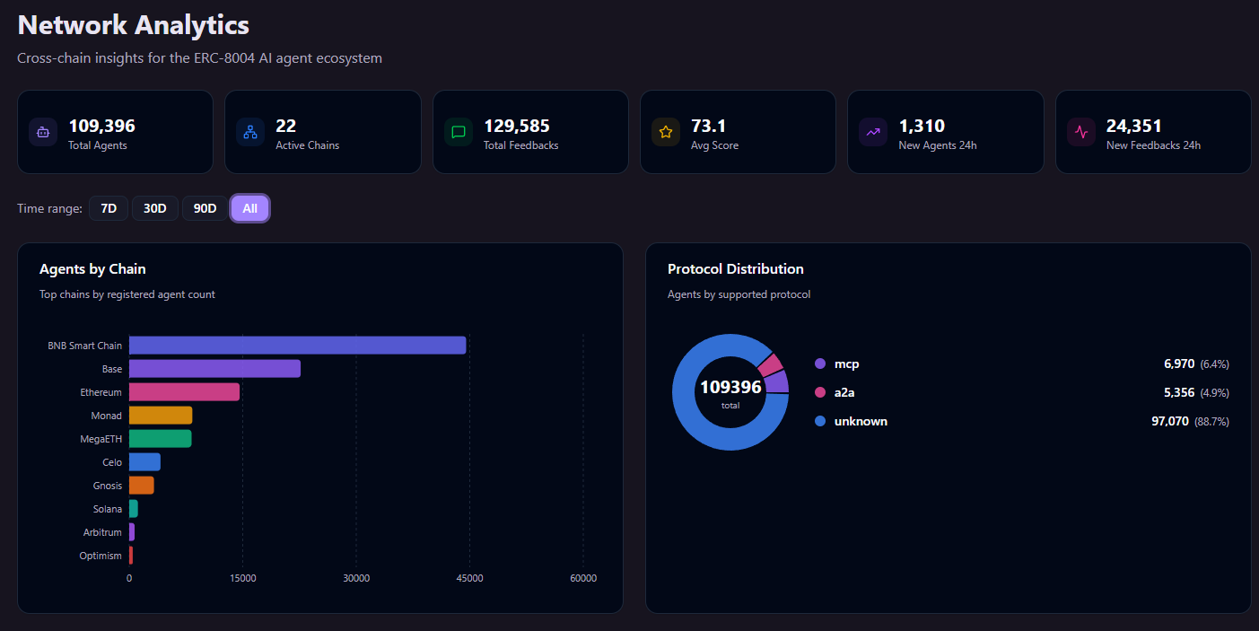 For true agent-to-agent commerce, where autonomous programs need to discover each other, negotiate terms, escrow funds, and settle without any human in the loop, the programmability of onchain rails becomes harder to replicate. Ethereum standards like ERC-8183 (escrow-based job completion between agents) and ERC-8004 (onchain identity, reputation, and verification registries for agents) are building that deeper layer. It is early: total x402 volume across all chains is currently at its lowest since launch, and true agent-to-agent transactions account for less than 20% of the total.