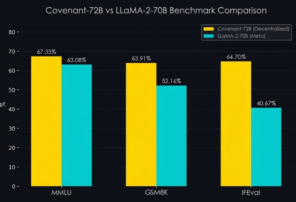 Most of that capital has gone into building infrastructure: coordination protocols, GPU marketplaces, incentive layers. Covenant-72B is the first major output to come out the other end of that plumbing. The model itself is not frontier, but the training run proved that distributed coordination works at scale and produced novel compression techniques like SparseLoCo that make the entire architecture more viable.