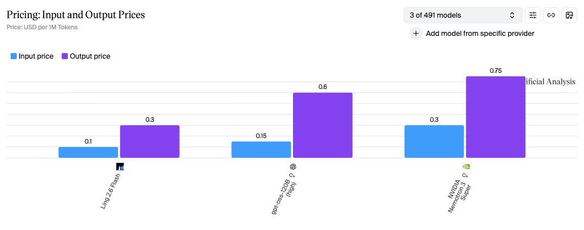 Multiply by price per token. Ling: $23. GPT-OSS: $67. Nemotron: $145.